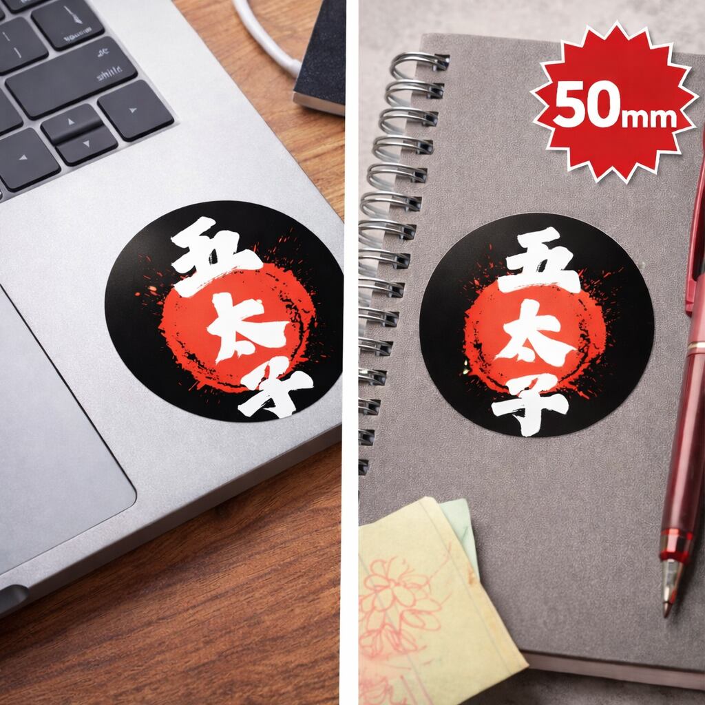 直径50mmというサイズは、ノートPCやスマートフォン、スーツケース、あるいはマジック道具のケースなど、あらゆる場所にフィットします。 「五太子」の公式ロゴが、あなたの持ち物に洗練された和のアクセントと、不思議なパワーを添えてくれます。